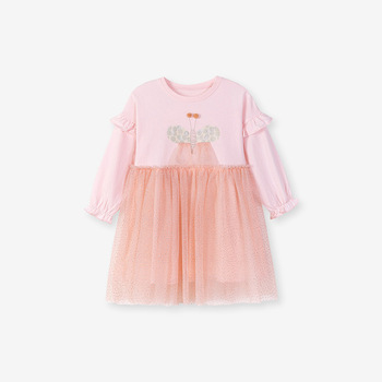 Vestido de malla de patrón sólido de estilo europeo y americano para niños de otoño, falda informal bonita al por mayor para niñas pequeñas