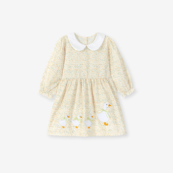 Europese Amerikaanse Zoete Cartoon Kinder Herfst Lange Mouw Katoenen A-Lijn Knielengte Meisjes Jurk