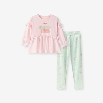 Sonbahar kızların günlük giysi çocuklar için pamuk örgü kumaş katı ve sevimli karikatür tasarım şık bebek çocuk giyim